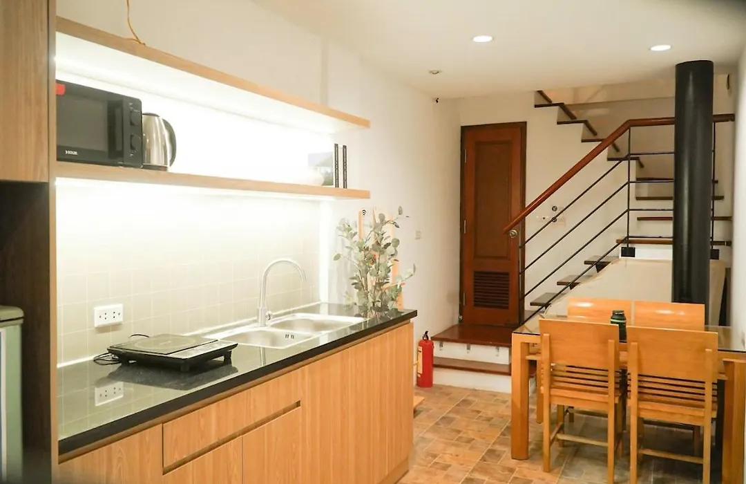Das Whole House With 3 Bedrooms In Hoan Kiem - 7Mins To Hoan Kiem Lake - Free Launchdry & Breakfast verfügt über Annehmlichkeiten für Selbstversorger wie Küche und bietet außerdem einen Essbereich im Freien, in der die Gäste entspannt ihre Mahlzeiten einnehmen können.